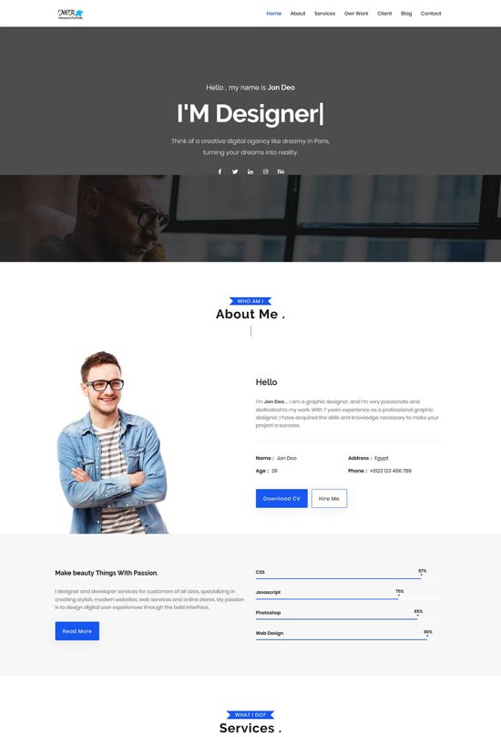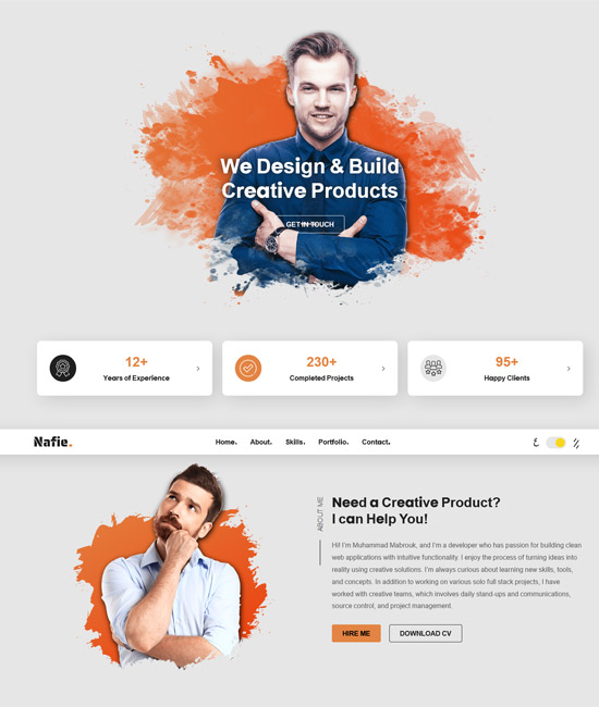 Nafie is a combination of good design, quality code and attention to detail. It is suitable equally a resume website, personal CV or creative portfolio. Information technology is ideal for professional people. Perfect for displaying your skills, experience, jobs, and expertise. If you are looking for a loftier-quality and simple resume template for your personal or business jobs, Nafie is platonic for you.