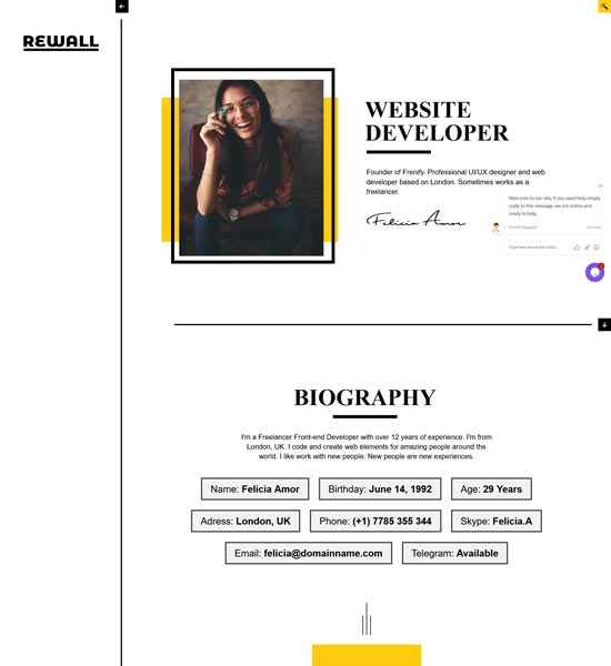 Rewall Personal Portfolio HTML Template is for many purposes, such as minimal portfolios, agencies, personal portfolio, photography, freelance portfolios, etc. Users volition dear your site because information technology gives them a unique user experience (UX). The HTML files are well organized and named accordingly, making it very easy to alter the unabridged layout.