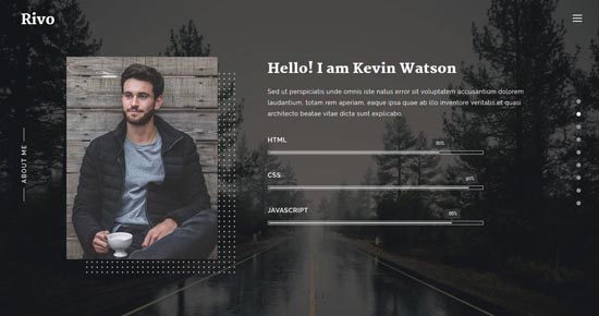 Rivo is a personal portfolio HTML template with sleek and elegant pattern. Yous tin can customize it easily according to your choice. It is suitable for your personal portfolio, CV or CV. Rio can exist hands customized and well documented.