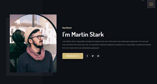 Fifty is an HTML template for personal, luxury and plug-in personal apply, resume or portfolio portfolio. It is a very uncomplicated model, clean and minimalist. With this design, you lot tin view your bio, skills, services, work experience, comments, and insights. The model looks great and volition appeal to lovers of minimalist style. The content of the template is based on HTML5, CSS3 and Bootstrap v4 Organisation.
