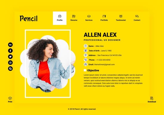 Alan Resume / CV / vCard HTML Template, a premium tool to promote yourself. Ready to look stunning on any device, from a widescreen monitor to a mobile phone. vi beautiful colour schemes are incorporated and it is piece of cake to fix whatever colour on items like links, buttons, card links, etc. The template contains detailed documentation with examples, with which you lot can quickly and easily create your own high-quality website.